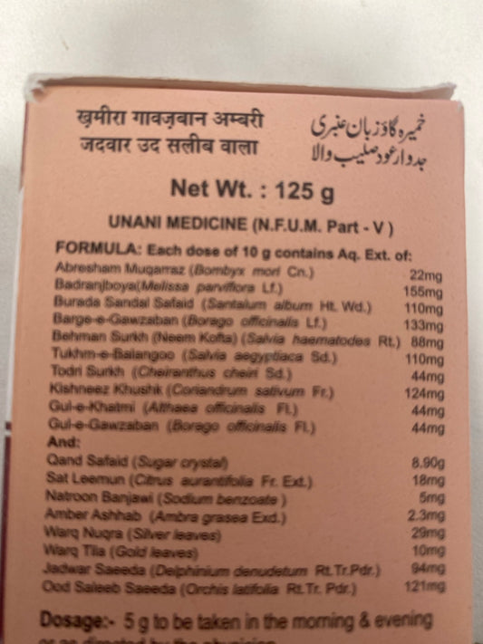 Khameera Gawzaban Ambari Jadwar Ood Saleeb Wala – Unani Herbal Preparation 125g