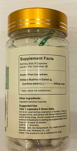 Shiitake Mushroom Extract Lentinus edodes Caps (500mg ) 90 veg capsule vegan