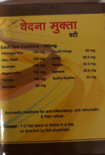 Vedna Mukta Vati anti inflammatory, anti rehumetic & a pain reliver. 30 tablets
