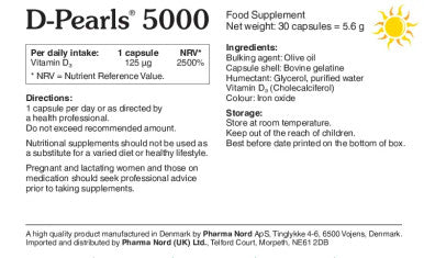 Bio Vitamin D3 5000 IU cholecalciferol 30 Capsules Pharma Nord 125 micrograms