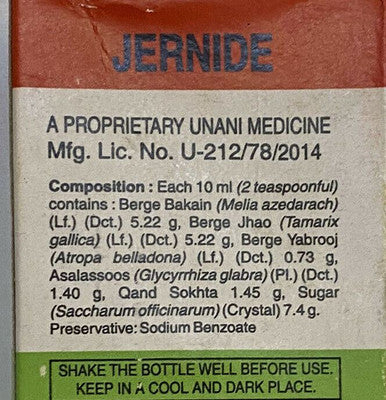 Hamdard Jernide Syrup is an Unani preparation. Hamdard Jernide addresses the issue related to male general debility. This syrup can be used by male only. It checks seminal discharge and provides relief from burning sensation urine discharge. It is also helpful in night fall.