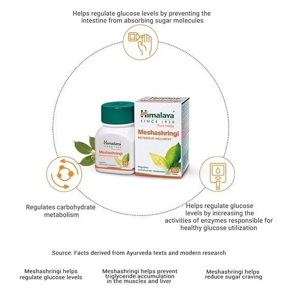 Meshashringi Gurmar regulates carbohydrates metabolism, diabetes 60 tablets himalaya